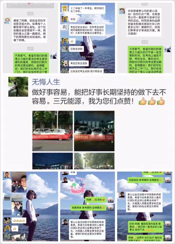 三元人懷揣著激動(dòng)而又心安的心情,此屆愛(ài)心***公益活動(dòng)***結(jié)束在此,也感謝所有三元能源的家人們,謝謝你們這兩天辛勤地的付出,同時(shí)讓每一位三元人也切身體會(huì)到的更多的是滿滿的感動(dòng)和愛(ài)。兩天雖短,卻讓我們收獲頗豐,更得到了社會(huì)各界的支持和贊譽(yù),尤其是來(lái)自考生和家長(zhǎng)發(fā)自肺腑的感謝和真摯的祝福期間所有感動(dòng)的瞬間,大愛(ài)的流露太多太多!期間我們遇到了一位家長(zhǎng),她的一雙兒女,兩年都是分別被我們車(chē)隊(duì)接送,今年是她的女兒;我們一大早六點(diǎn)就起來(lái)在新鄉(xiāng)市公交站牌、小區(qū)門(mén)口等候接送,家長(zhǎng)知道我們起得早,第二天考試直接給我們準(zhǔn)備了一大袋的鹵雞蛋,說(shuō)句心里話,這一次是我們吃過(guò)***好吃的鹵蛋…等等…太多太多的感人事跡和關(guān)于愛(ài)和緣分的故事很慶幸擁有三元能源這個(gè)大家庭,也很慶幸每一位三元人都能真正靜下心來(lái)去踐行這份公益事業(yè),同時(shí)我們?nèi)茉垂靖鼤?huì)堅(jiān)定不移地把這份愛(ài)心公益活動(dòng)傳承下去***后,祝愿所有2017年的高考生們:愿你們合上筆蓋的那一刻,有武士將刀收回劍鞘般的驕傲未來(lái),我們一起加油!